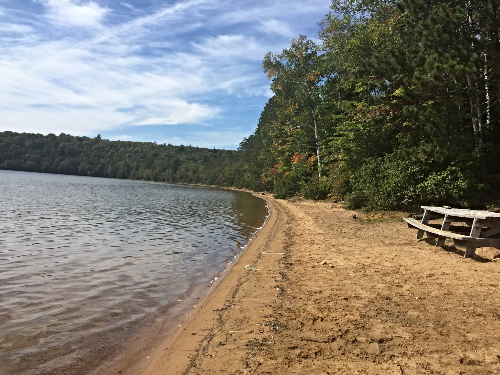 Bella Lake - foundation-owned private beach - accessible by car or boat (canoe 1 hour paddle, motorized boat 30 minutes, by vehicle 30 minutes) ; Merrymeet's hosts can provide access directions. Soft sand bottom gently slopes over a distance of 50 metres making the beach perfect for sunbathing, paddling and water sports such as volleyball, football 'catch', etc.
